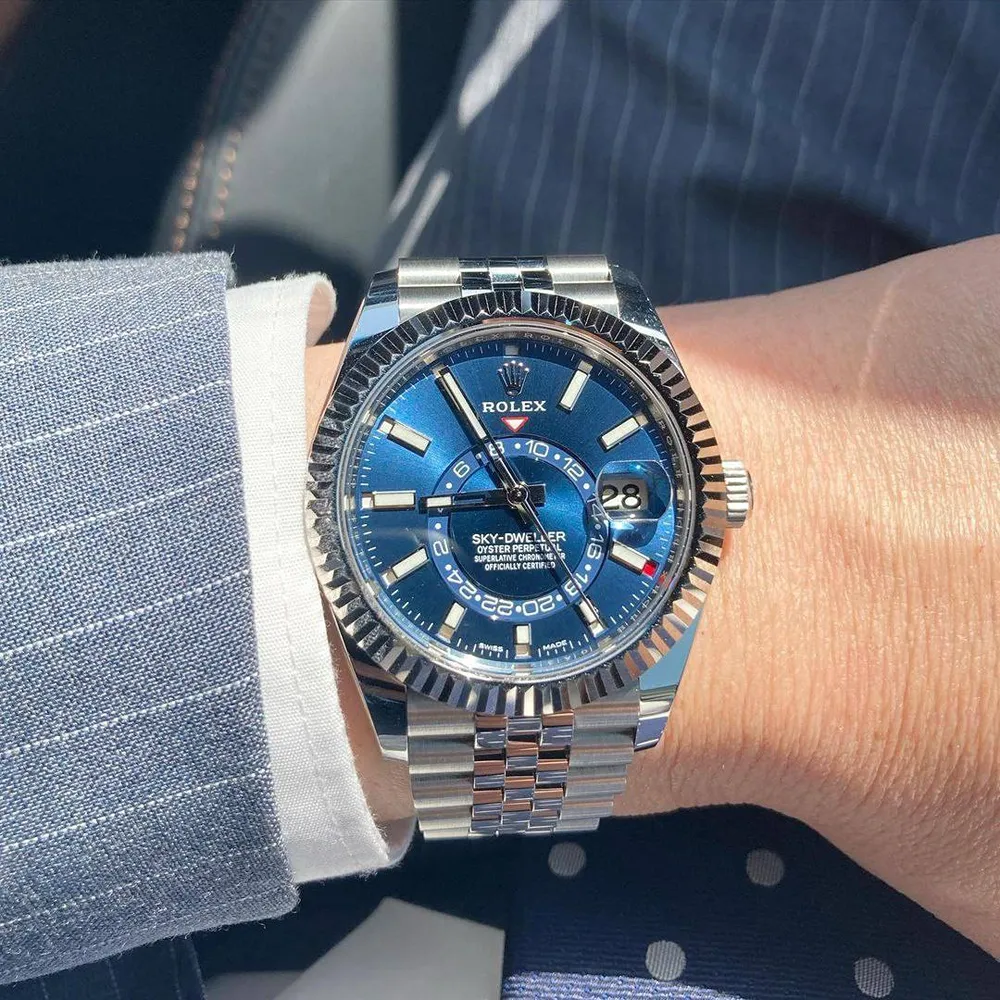 - Special blue dial with silver bezel