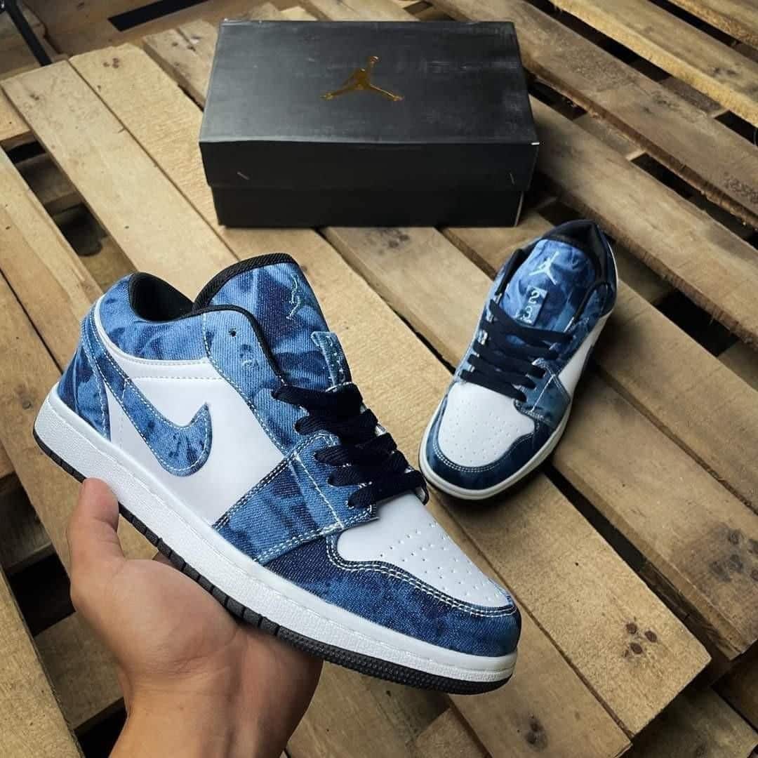 Branded Air 1 Washed Denim Low Sneakers