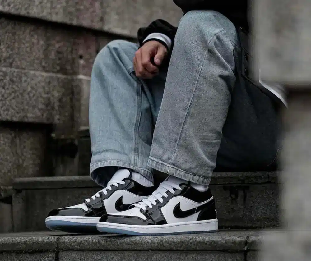 Embrace timeless street style with the Retro1 Concord White Black Low Sneakers. These low-top shoes feature a classic design with a monochrome color scheme, bringing a sleek and versatile touch to your urban wardrobe. Step confidently into the world of street fashion with the Concord White Black Low Sneakers, where each stride is a testament to your refined sense of style.